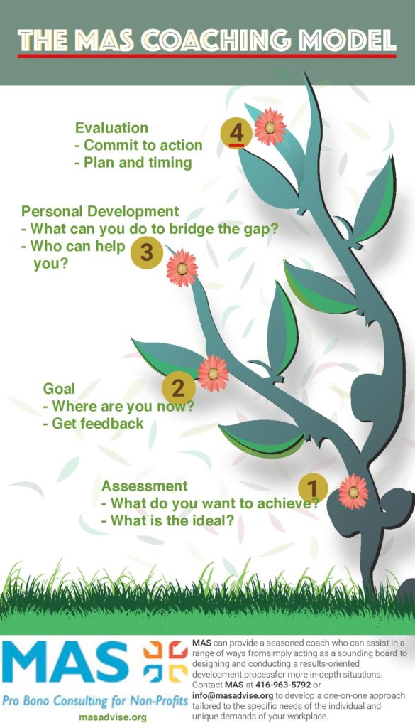 Coaching by a MAS Volunteer Consultant can help improve leadership skills and put managers in a position where they are better able to influence staff and volunteers to achieve organizational goals. Contact MAS to develop a one-on-one approach tailored to the specific needs of the individual and unique demands of your workplace.